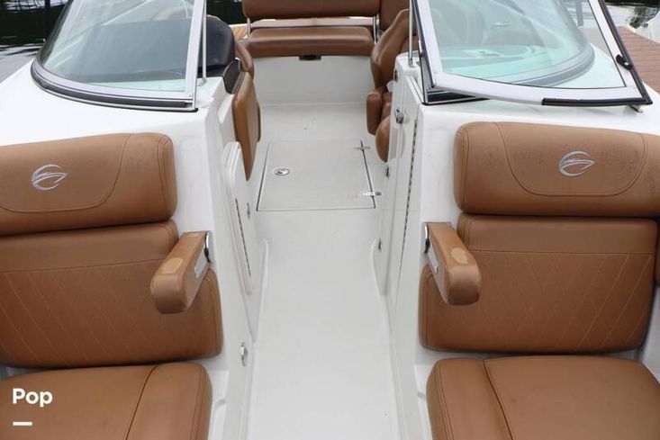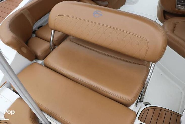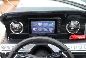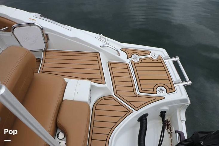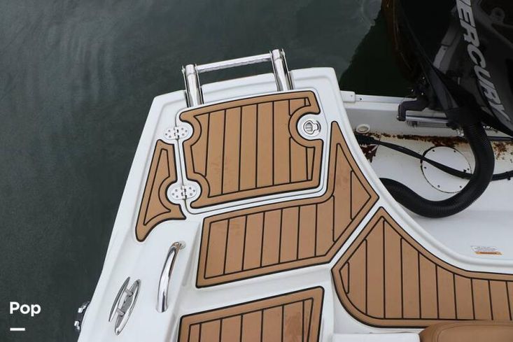 In the rear, you will find a spacious adjustable aft sun pad for hanging out on the water. Easy water access is provided via a large integral aft swim platform with a sea-deck mat and a telescoping stainless steel swim ladder.