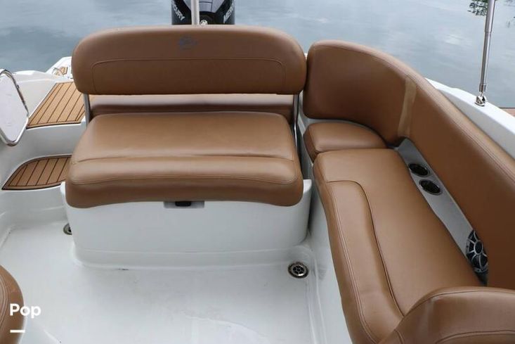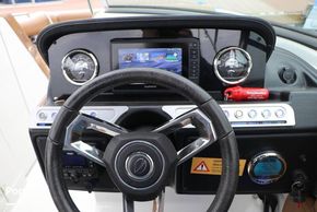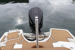 The boat has the sleek styling and ride of a sport boat, along with the comforts and conveniences of a deck boat with an outboard engine.