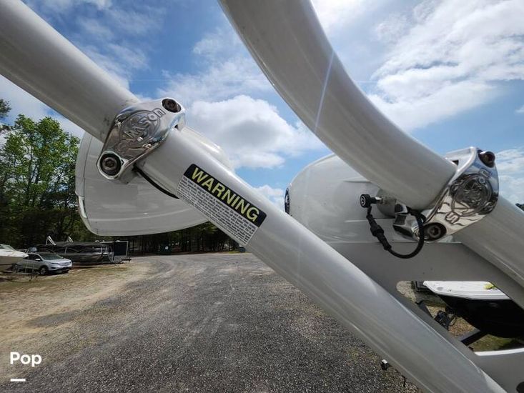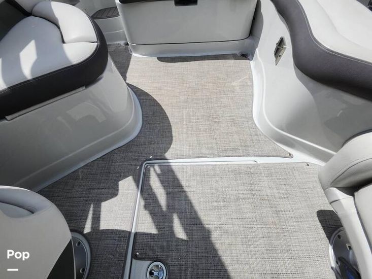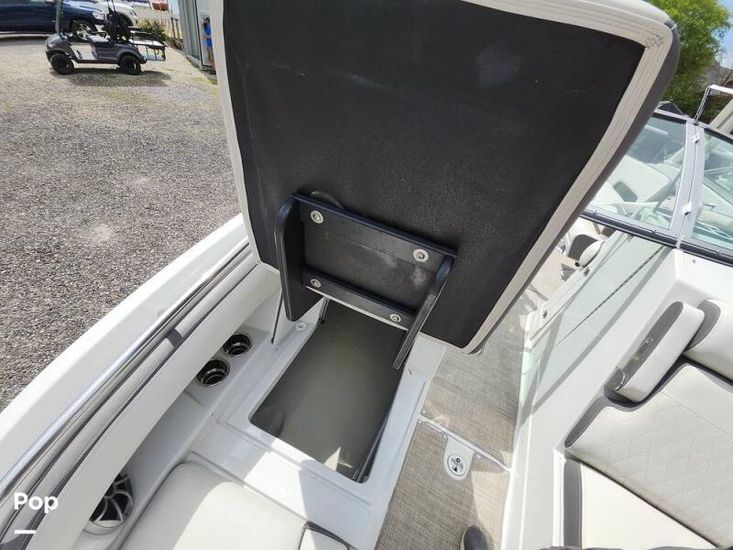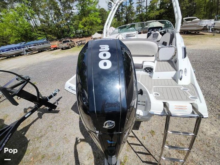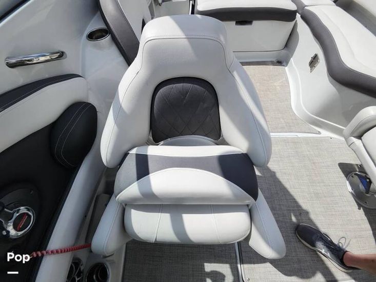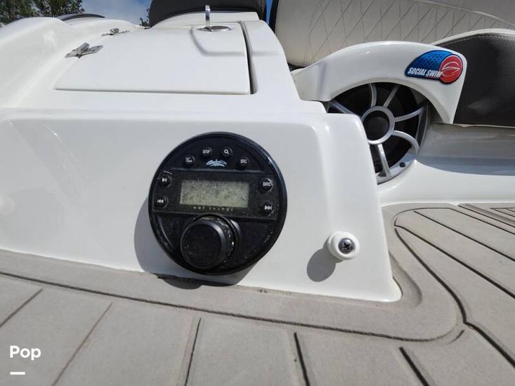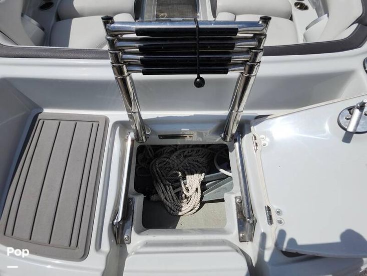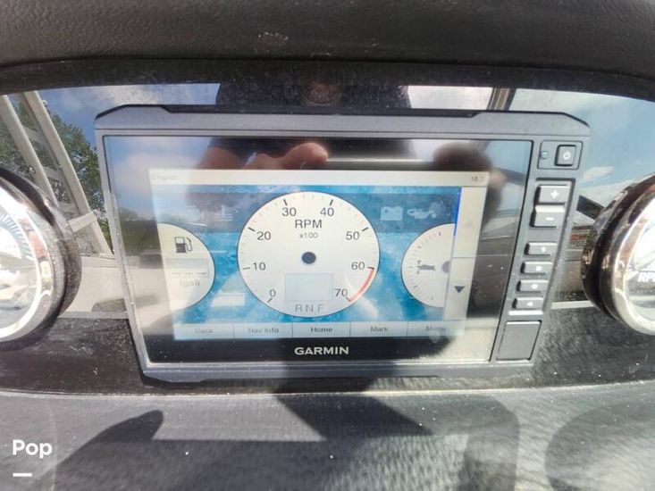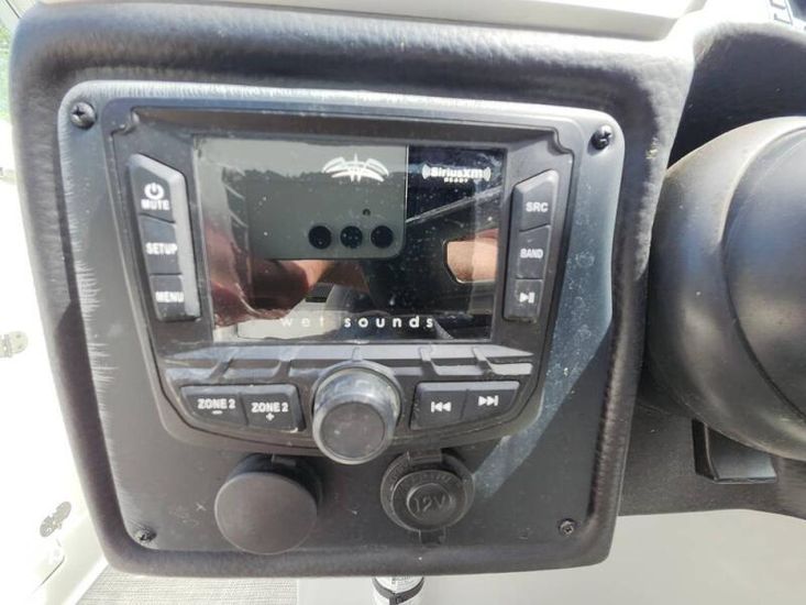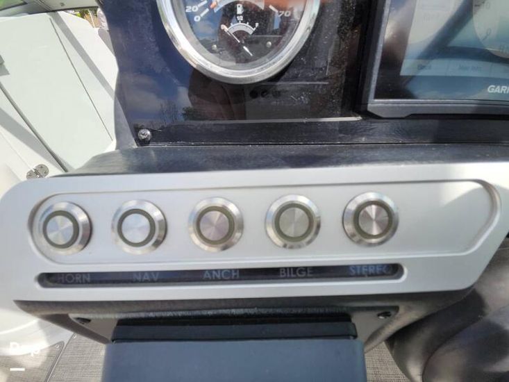 The Garmin console on the dash has sonar, GPS mapping, and boat engine statistics. Nice features include the stern tow eye and sports tower.