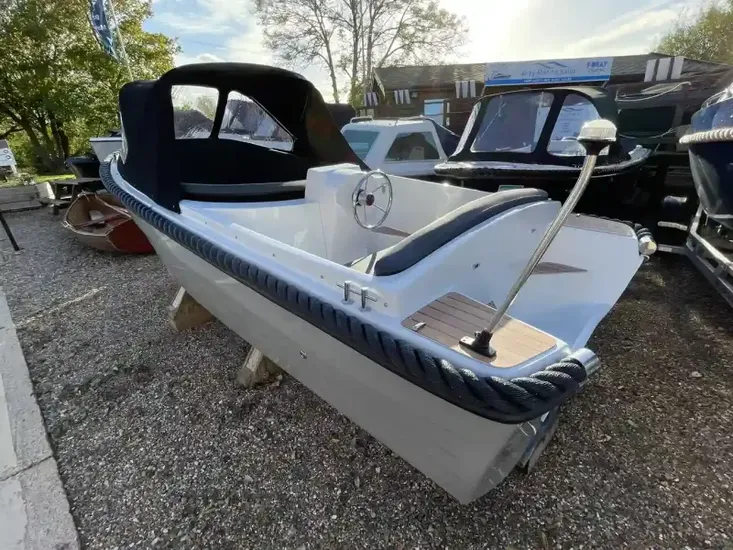 The entry model Chaloupe 490 offers the quality and traditional Dutch sloop styling of the larger versions in a compact, easy to manage package which offers excellent value for money. The clinker effect hull with an oversized rope fender are characteristics of this boat, a popular all-round fun boat for the whole family.