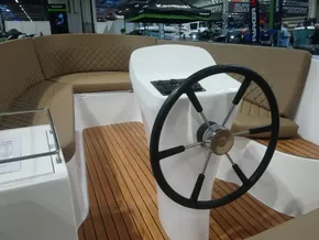Ex Display Chaloupe 610 - The Chaloupe 610 combines classic and the modern in this stylish sloop. A smooth hull with a rope fender and an integrated swim platform. The motor is mounted under the rear sun deck which offers cleaner styling. Powered by a Yamaha 25hp with fuel injection for smooth effortless cruising. Stability and visibility are the keywords for the 610.