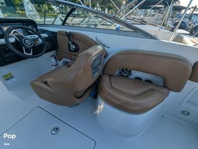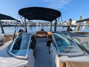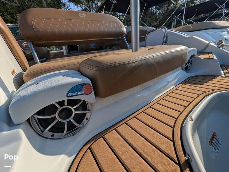 In the rear, you will find a spacious adjustable aft sun pad for hanging out on the water. Easy water access is provided via a large integral aft swim platform with a sea-deck mat and a telescoping stainless steel swim ladder.