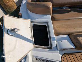 Moving aft, the Captain and portside companion ride in ultimate comfort in adjustable sport bucket seats with flip-up bolsters. Just forward of the portside companion seat is a fully enclosed head compartment with a handheld shower, sink, solid-surface countertop, and room for a porta-potty. In the cockpit, there is a starboard J-shaped aft lounge seat and a single seat to port.